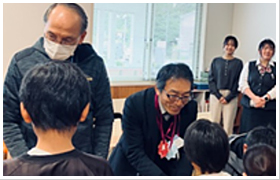 クリスマスが近いこともあり、クリスマス用のお菓子セットなどを溝口正明副会長・東垂水末義専務より贈呈しました。子どもたちにも喜んでもらいました。