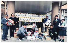 これは鹿児島県農協青壮年組織協議会とJF県漁青連が企画している児童養護施設への農水産物寄贈活動に、鹿児島県協同組合協議会(KJC)に加盟する団体として参加をしました。